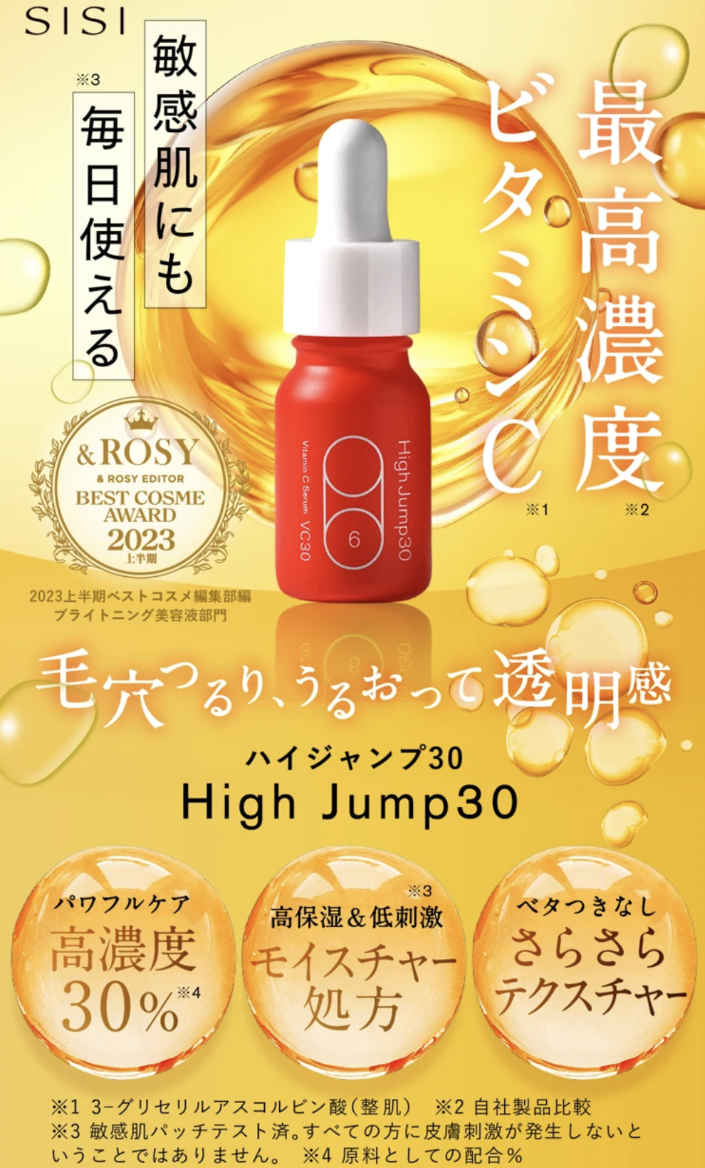 新保湿型ビタミンC誘導体を30%と高濃度に配合した美容液。